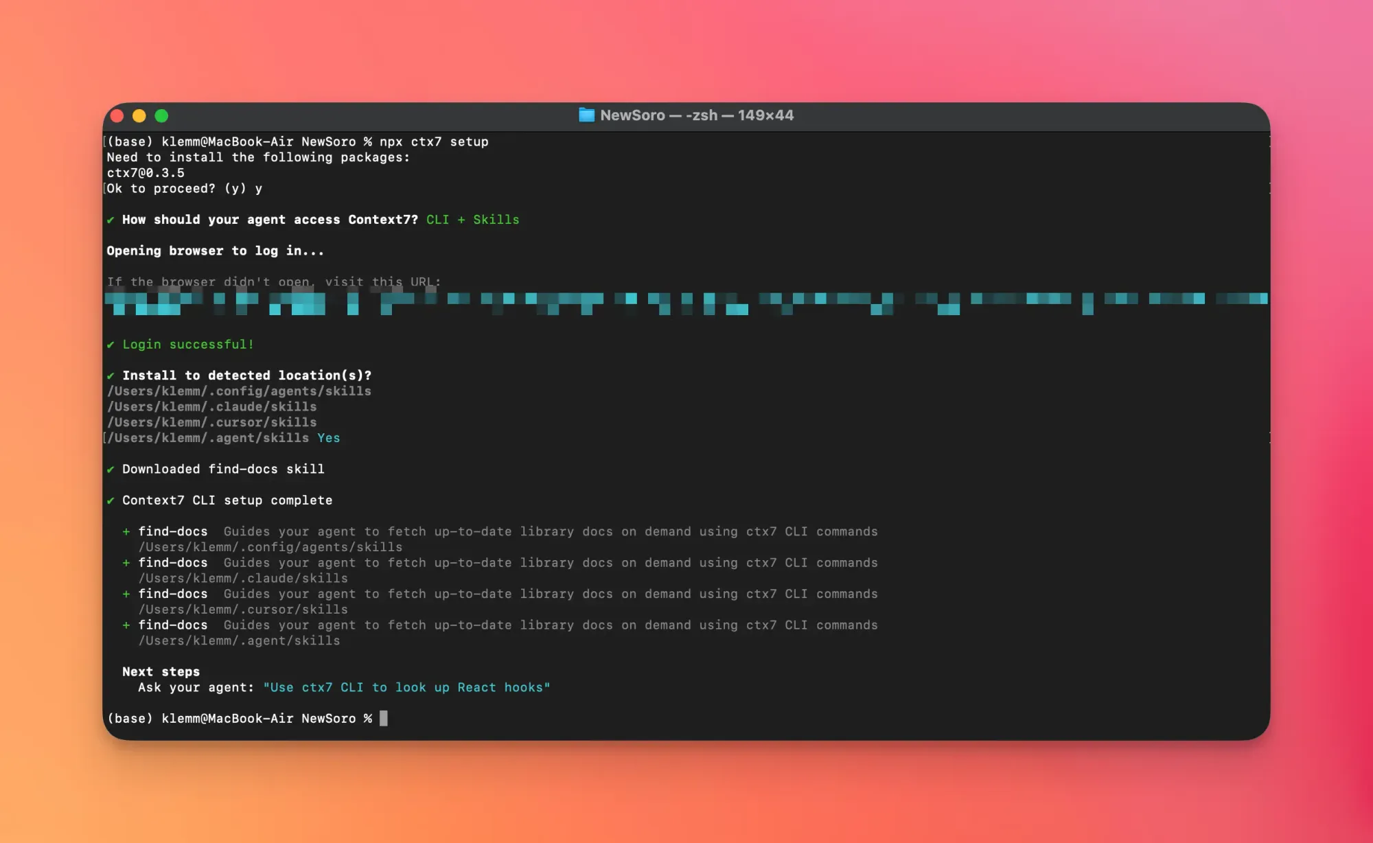 npx ctx7 setupThat installs a skill that guides your agent to pull docs using ctx7 CLI commands. No MCP config. No editor lock-in. Works with Claude Code, Ollama, llama.cpp, or whatever runtime you're actually using.